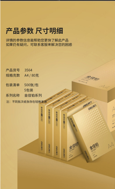 得力/deli 3564 復(fù)印紙 A4 80G 500張/包,5包/箱